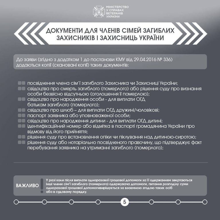 До заяви членам сімей загиблих захисників потрібно додати копії таких документів: