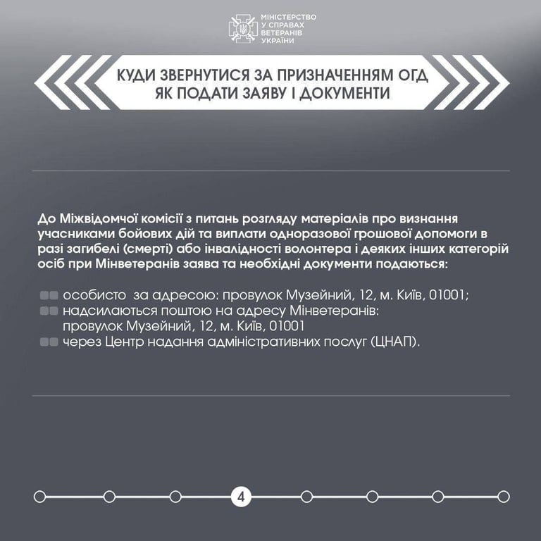 У повідомленні сказано, що згідно зі змінами до постанови КМУ № 336 тепер подавати заяву до Мінветеранів на призначення ОГД можна через ЦНАПи.